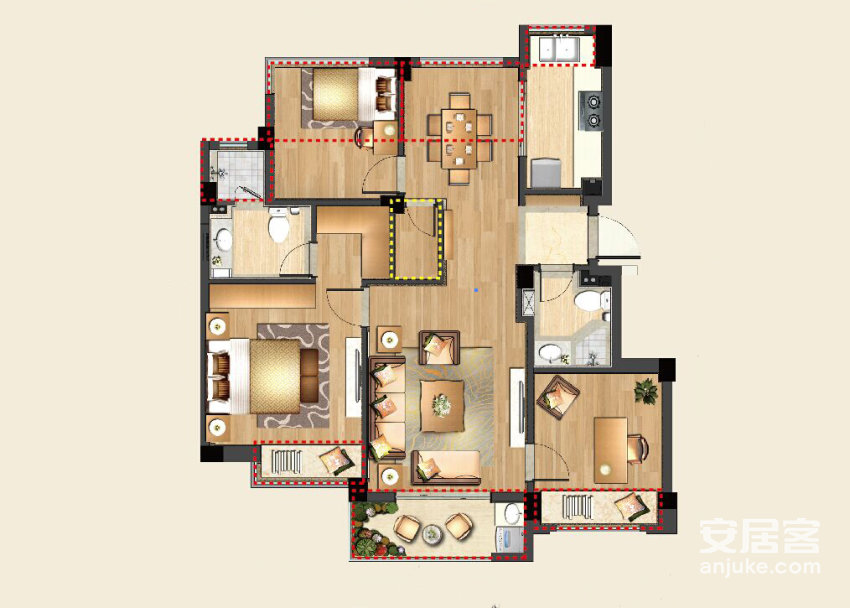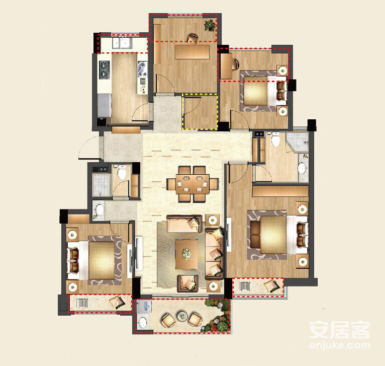 楼盘户型:3室户型, 4室户型