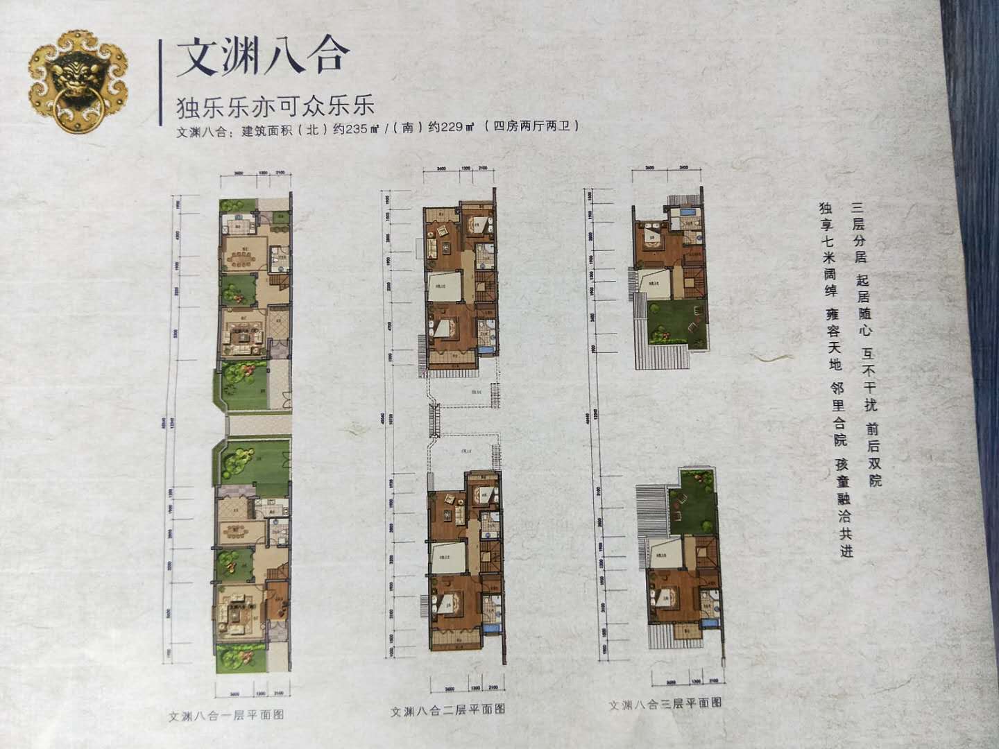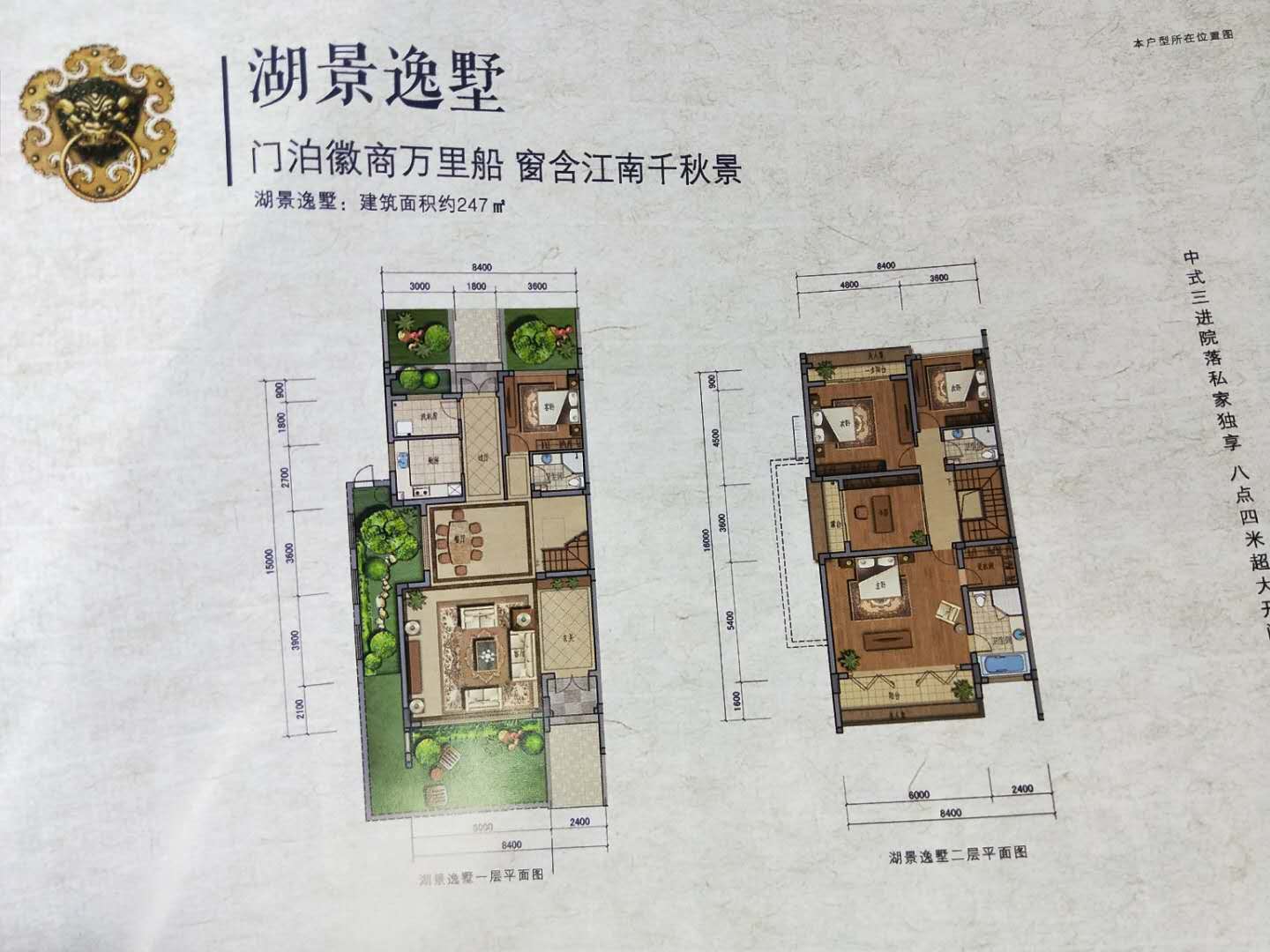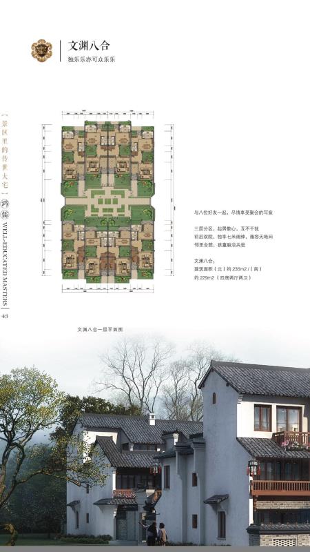 楼盘户型:中式三进院落,8.4米超大开间,尽览千岛湖景。建筑面积247㎡(五房两厅三卫)户型2:八合院 总价380万起.