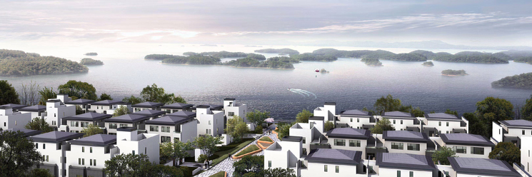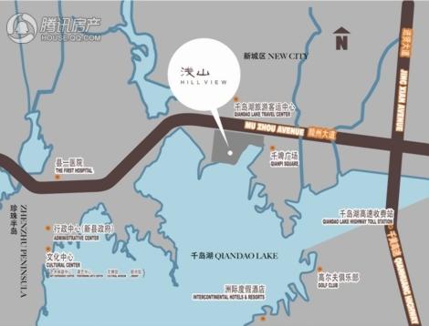 六合浅山是六合地产集团继六合天寓后新开发的中高端度假生活住区。浅山位于千岛湖青溪新城区块,西临千岛湖城区、新行政及文化中心,东邻杭千高速千岛湖出口,北面依山,南面临湖。目前项目周边已拥有洲际、希尔顿、高尔夫球场等高端度假休闲配套,未来还将建设城市广场、商业广场、环湖景观带等度假休闲配套设施,是一片深具发展潜力和适宜度假生活的区域。