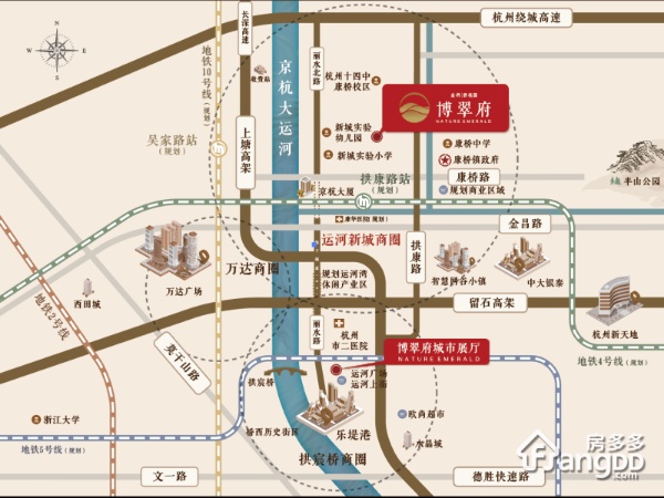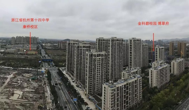 教育设施:浙江省杭州第十四中学(康桥校区)、杭州市新城实验小学、杭州市余杭区崇贤第二小学、浙江省杭州第十四中学附属学校、康桥中学、杭州市文渊小学、良山小学、余杭区崇贤第二幼儿园四维园区、杭州市新城实验幼儿园、康桥智多星幼儿园