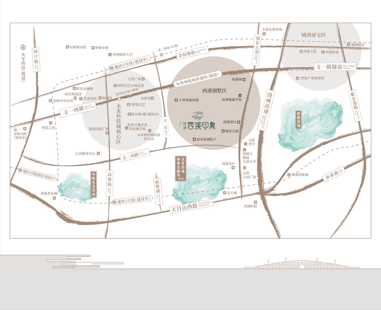 教育设施:杭州师范大学附属五常中心小学、浙江省信息化测绘创新基地、杭州文澜未来科技城学校、杭州维翰学校、杭州师范大学附属学校五常中学、杭州未来科技城双语幼儿园、杭州图书馆(运动分馆)、大华西溪风情幼儿园、中电海康集团研究院、浙江省第二测绘院