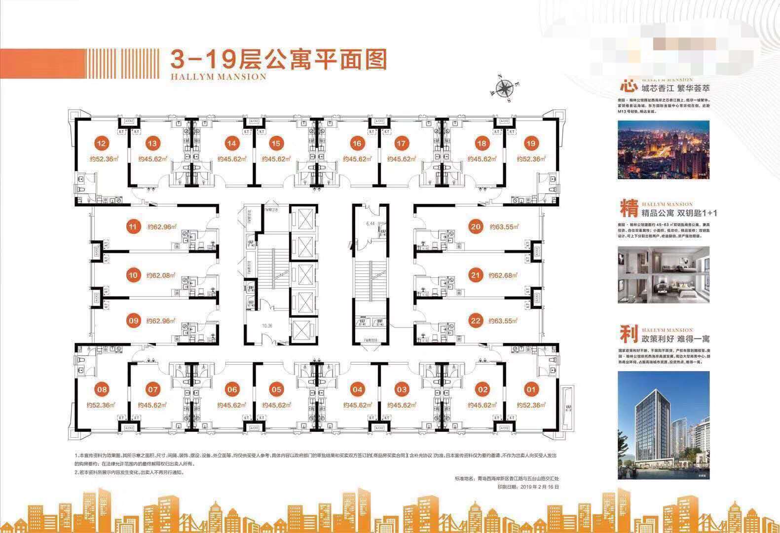 户型面积:45㎡2居、52㎡2居、63㎡2居