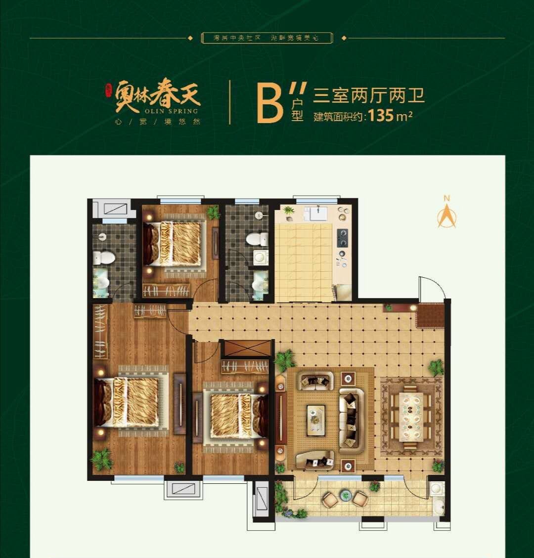 奥林春天位于胶州经济技术开发区,南至滨河路、东至西三路、北至北十三路、西至青岛海达伟业房地产有限公司项目地块,占地面积66690㎡,合计100亩,规划建面133380㎡,规划户数1065户。项目容积率为2.0,共建设17栋住宅楼,包括1+22F高层住宅2栋(15#、17#,其中一层设居委会、物业、社区卫生服务用房);2+21F高层住宅1栋(16#,其中一、两层设居委会、物业、社区卫生服务用房);18F高层住宅6栋(9#、10#、11#、12#、13#、14#);11F多层住宅2栋(7#、8#);7F多层住宅1栋(6#);6F多层住宅3栋(2#、4#、5#);4F多层住宅2栋(1#、3#),沿北十三路布设1F商业网点。