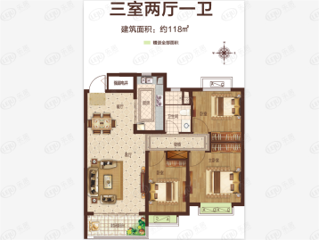 主力户型:三居(建面118㎡) 二居(建面80㎡) 三居(建面116㎡) 三居(建面118㎡)