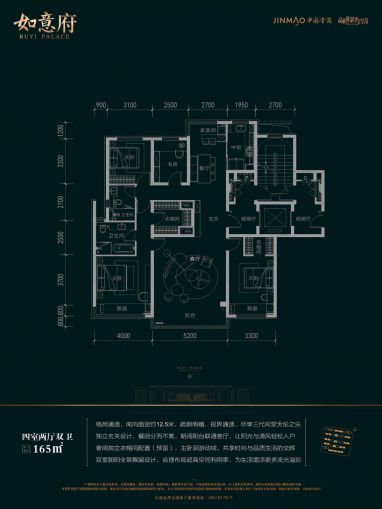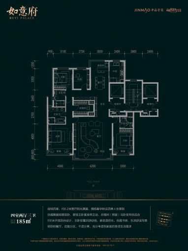 如意府西临众意西路、北临朝阳路、南接春雷路,东临龙腾三街。项目总占地面积约83亩,总建筑面积约9.4万㎡,容积率为1.69,中国金茂在郑州打造的第二座打科技住宅。 总共规划了5排,15栋住宅,544户,三个主力户型, 143㎡、165㎡、185㎡,均为四房户型,配置约800平方会所,整体设计为地上地下各一层,设有水吧、书吧、艺术、亲子、健身等功能; 社区东南侧配备9班幼儿园,建筑面积约2970平方米。