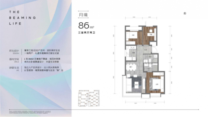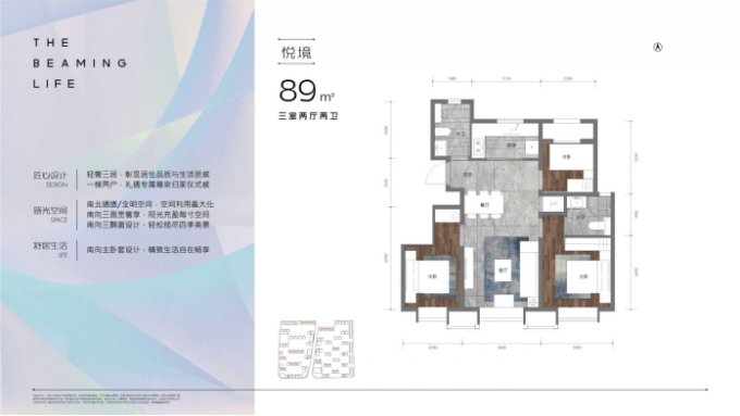 主力户型: 二居(建面76㎡) 三居(建面82㎡) 三居(建面86㎡) 三居(建面89㎡)