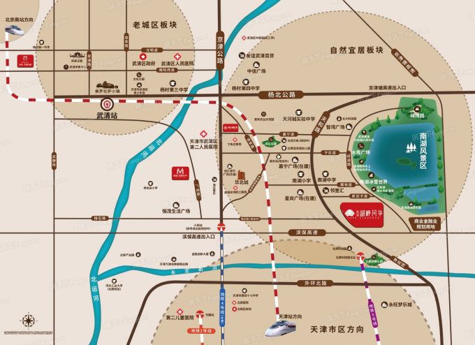 新城湖畔风华项目,位于天津市武清区丰和路和悦水道交叉口,由新城控股开发。新城湖畔风华项目占地面积5.5万㎡,建面6.4万㎡,容积率仅1.2,为片区内少有的低密墅级纯洋房社区。十字轴线景观设计,将毕世达露台等著名景点的精华形象浓缩在节点设计中。距离项目仅2公里的南湖公园,赋予社区鲜氧生活。同时商业环境成熟、医疗配套完善、教育资源丰富,旨在打造武清南湖片区的标杆社区。