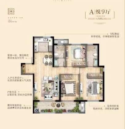 【樾府】高层户型面积113㎡、118㎡、123㎡、138㎡;小高层户型面积为170㎡;洋房户型面积138㎡。