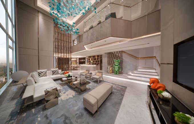 兰博基尼私享总套基础信息【 开发商 】:新世界集团地产有限公司【区域板块】:奥体中心板块【产权性质】:40年【主力户型】:416-422方跃层【建筑规划】:总高39层,160米,1~7F为酒店客房,8~39F为可售私享总套【 层高 】:单层3.65米客厅挑空7.3米【装修情况】:精装交付(约1.8万/㎡)【物业费用】:12元/平/月【燃气情况】:通燃气【车位配比】:约1:3